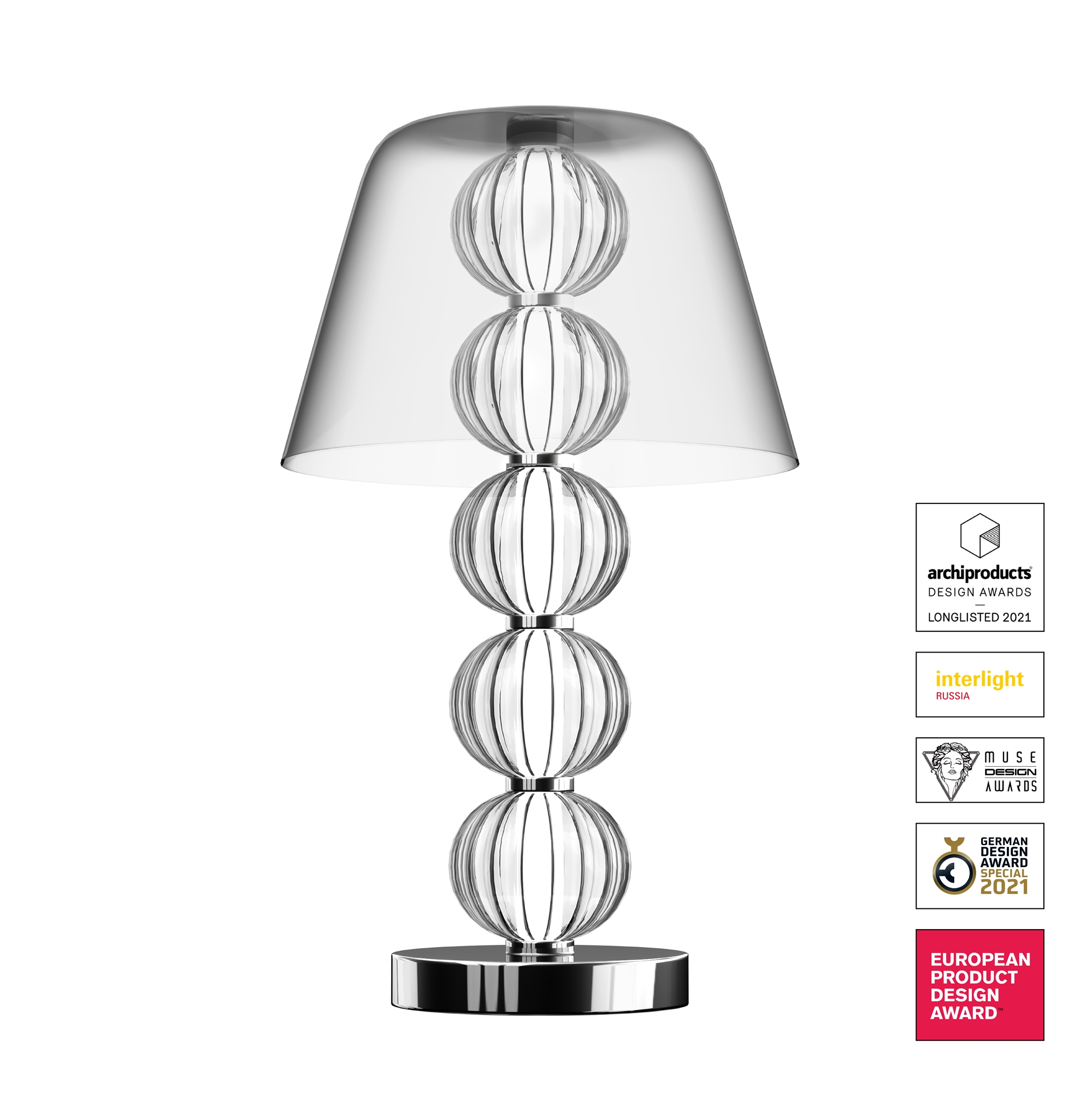 Настольный светильник Modern Amulet, LED 9W, 4000K, Хром, Прозрачный (Maytoni, MOD555TL-L9CH4K)